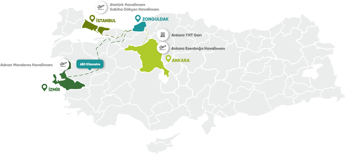Zonguldak’a Karayolu, Havayolu veya Demiryolu’nu tercih ederek gelebilirsiniz. Aşağıdan geliş şeklinizi seçerek alternatifleri görebilirsiniz.