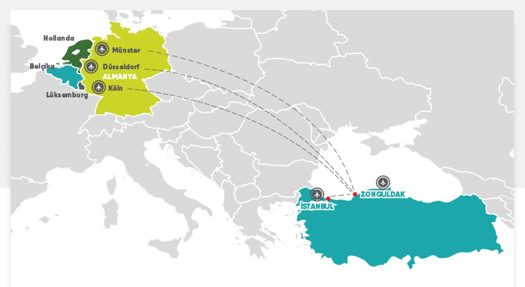 Zonguldak'ın Yakın Diğer Havalimanlarına Mesafesi